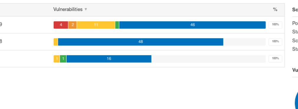 扫描结束后,Nessus会很直观的显示出目标网段的安全情况。下图显示了整个网段的安全信息。Nessus将安全问题归类为Info/Low/Medium/High/Critical五个等级,其中Critical等级的问题是最危险的,Info级别的问题通常是无关痛痒的信息显示问题。