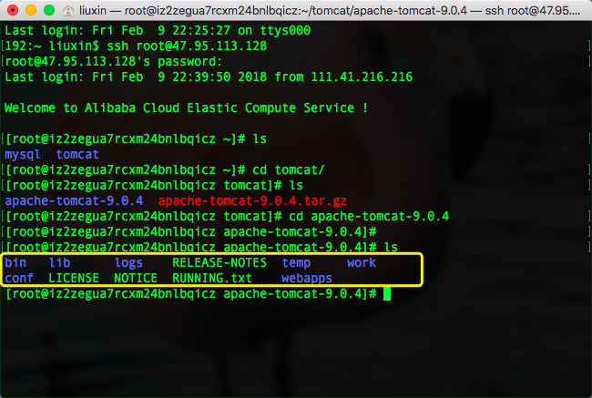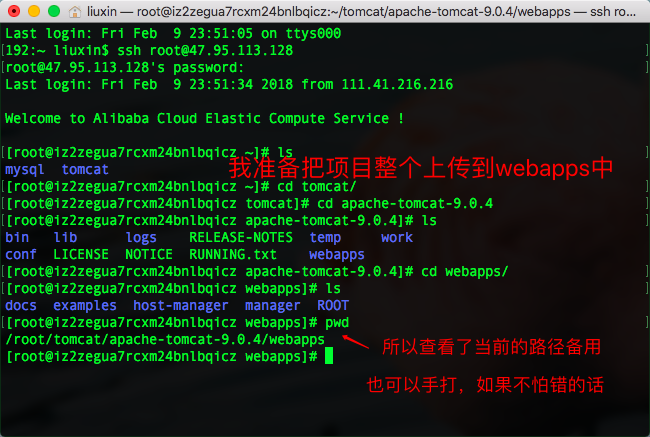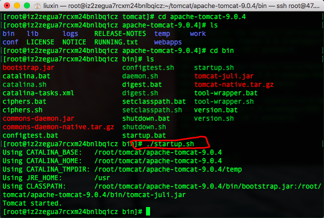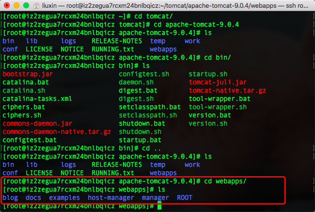 服务器终端(圈住的是我的tomcat下的目录)
