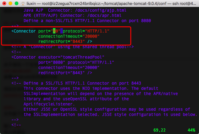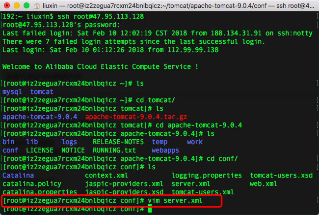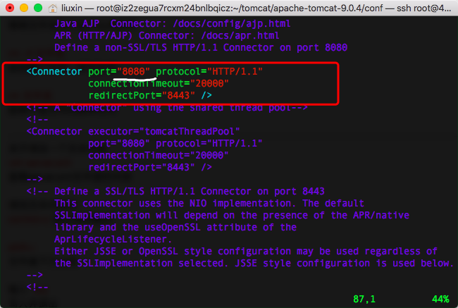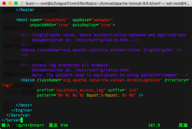 2.命令vim server.xml,查看server.xml
