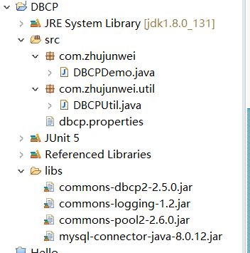 删除了jdbc.properties和JDBCUtil,新建了DBCPUtil.java
