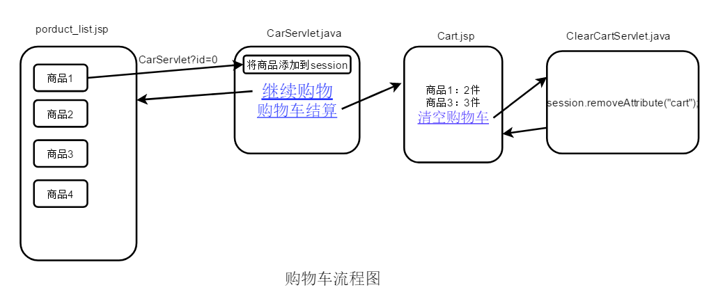 response.getWriter().write("<a href='cart.jsp'><h3>购物车结算</h3></a><br>");