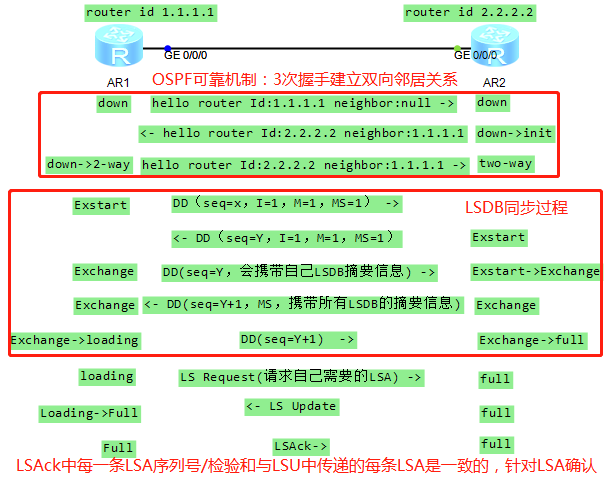 OSPF 邻居建立和LSDB同步过程:
