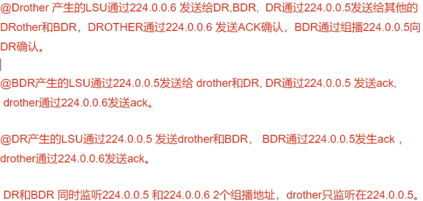 DR/BDR 监听:224.0.0.5和224.0.0.6 Drother监听:224.0.0.5