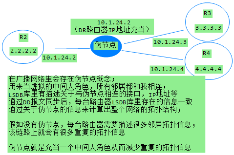 注意:广播/NBMA 网络里会出现一个伪节点概念,广播网络里ospf在计算拓扑的时候都把当成与伪节点相连,依次来计算路由拓扑。