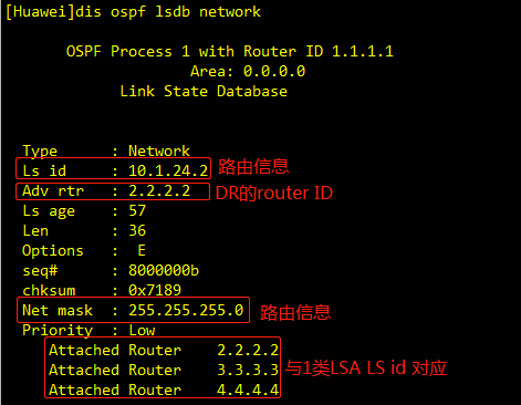 LSR:携带LSA的标识;type、Ls id、Advertising Router