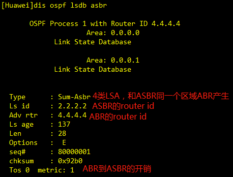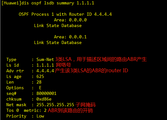 网络汇总lsa,由ABR路由器产生,将区域1、2类LSA做归纳,生成3类LSA泛洪到其他区域中。