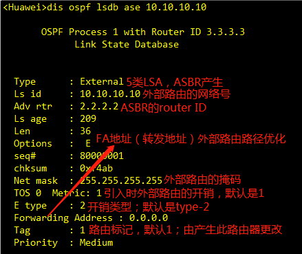 AS external LSA 自治系统外部LSA(外部引入路由)由ASBR路由器产生,用来通告网络去往其他路由协议的LSA。