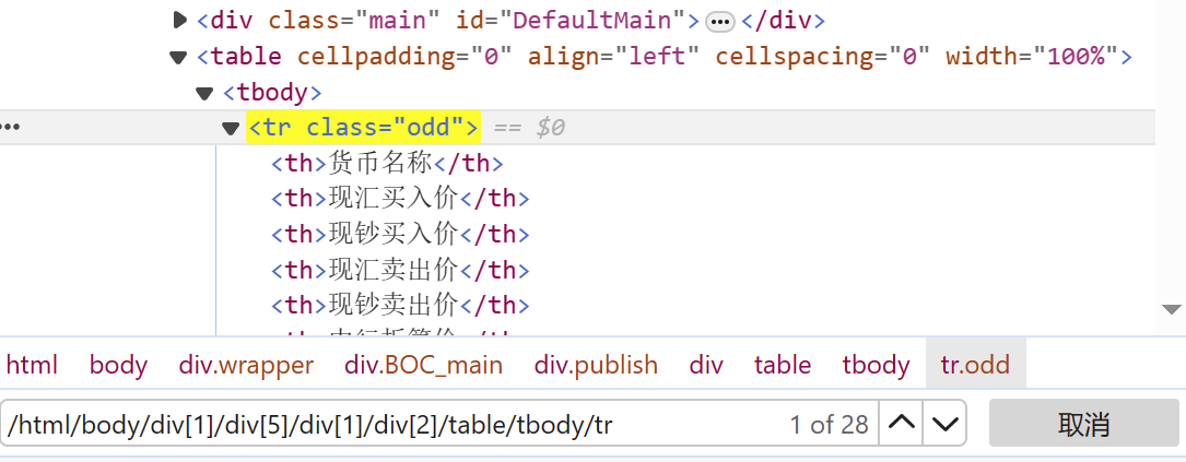 trs=response.xpath('//html/body/div/div[@class="BOC_main"]/div[1]/div[2]/table//tr')