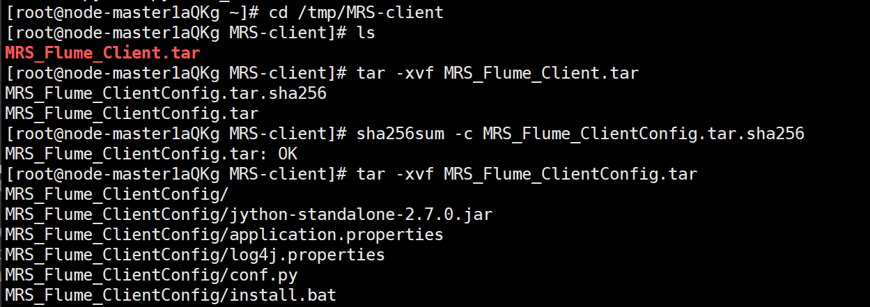 解压下载的flume客户端文件,校验文件包,安装Flume客户端