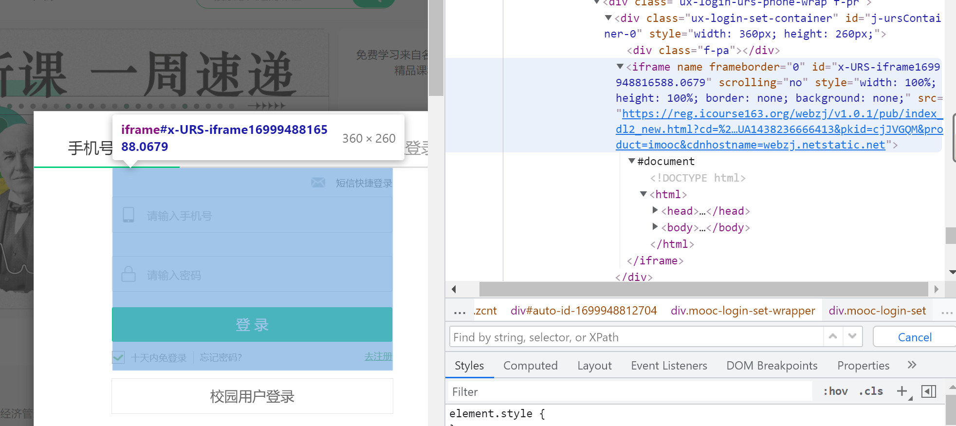 (1)一开始没注意到弹出的登录界面在iframe里,这是一个网页嵌套,于是之间复制的xpath路径定位不到输入框,需要切换到iframe中就可以,若有多个iframe可以根据id、class等定位不同的iframe。