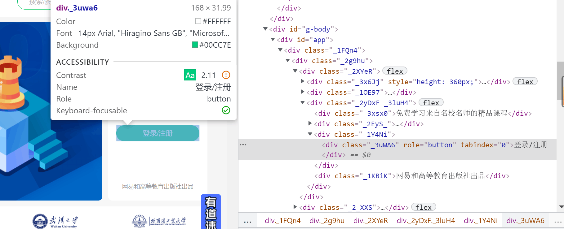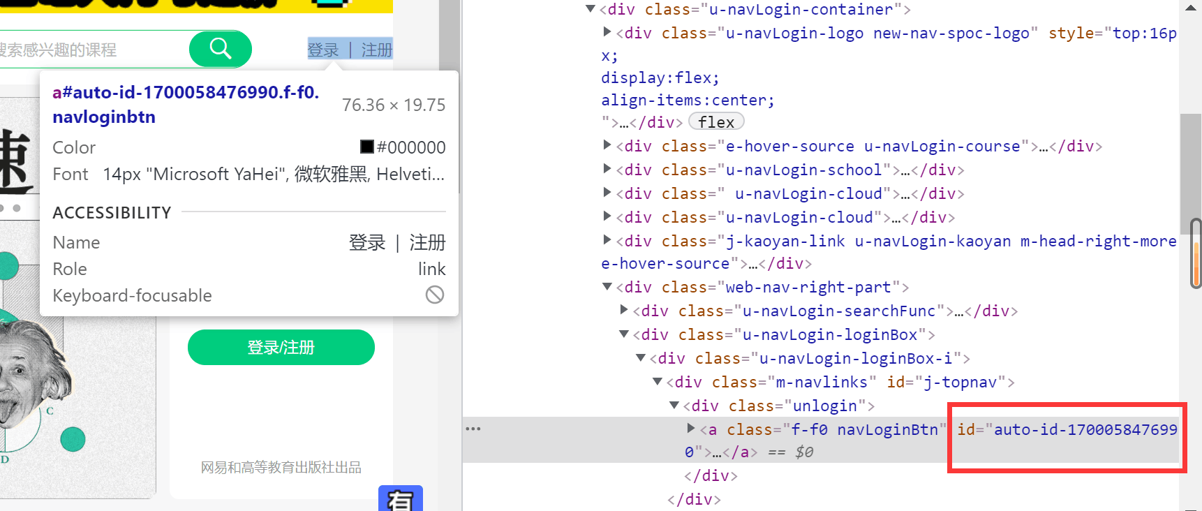 (2)切换到iframe后,点击登录按钮还是没有反应,观察看到有两个登录的按钮,其中有一个的id是会动态变化的,所以不能根据id定位该元素,还有需等到页面中的元素加载好了之后才可以定位到元素,于是加了WebDriverWait,在等待登录的按钮出现后执行相应的操作,确保页面加载完成并且元素可见后再进行后续操作。