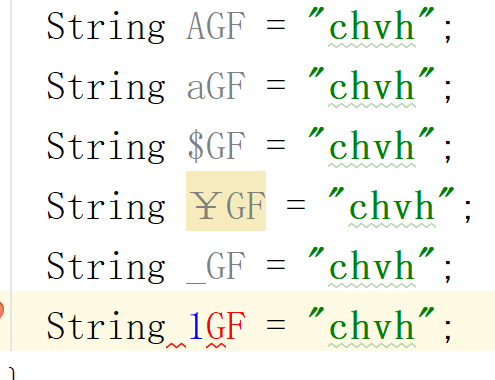 所有的标识符都应该以字母(A-Z或者a-z),美元符($),人民币符(¥)或者下划线(_)开始
