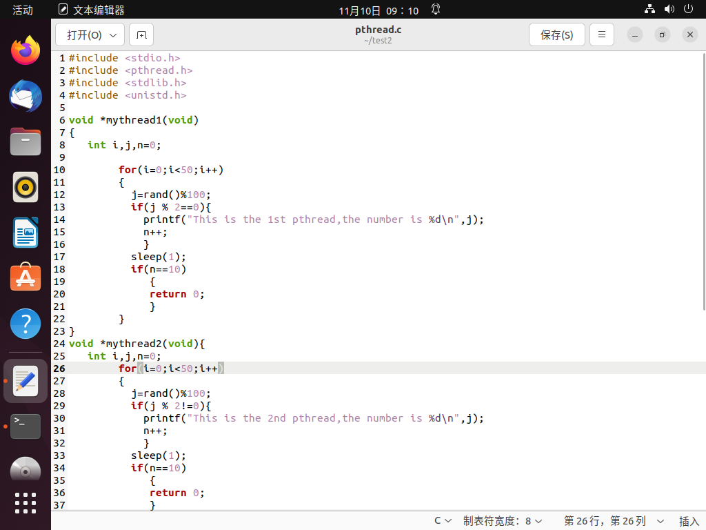 printf("This is the 2nd pthread,the number is %d\n",j);