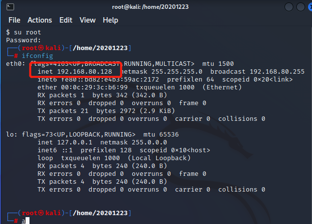 - 此处的ip地址为kali的ip:192.168.80.128
