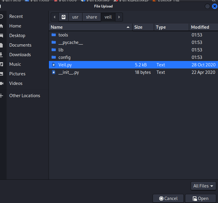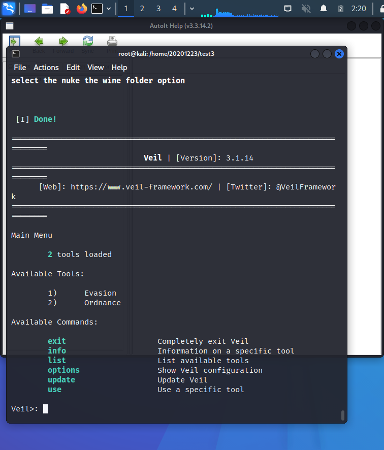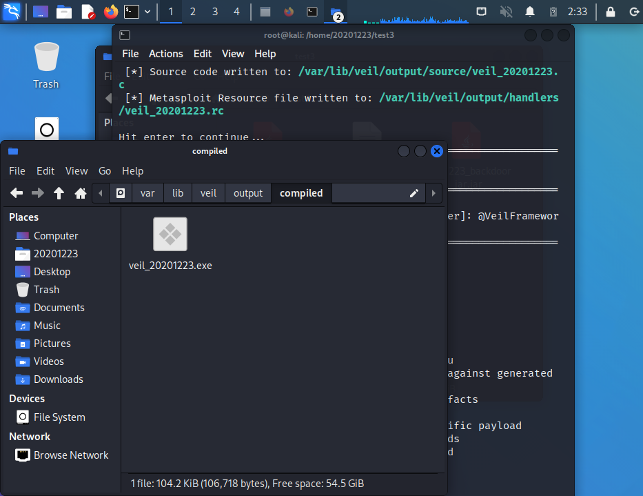 - 生成的文件的路径为/var/lib/veil/output/compiled/20201223veil.exe