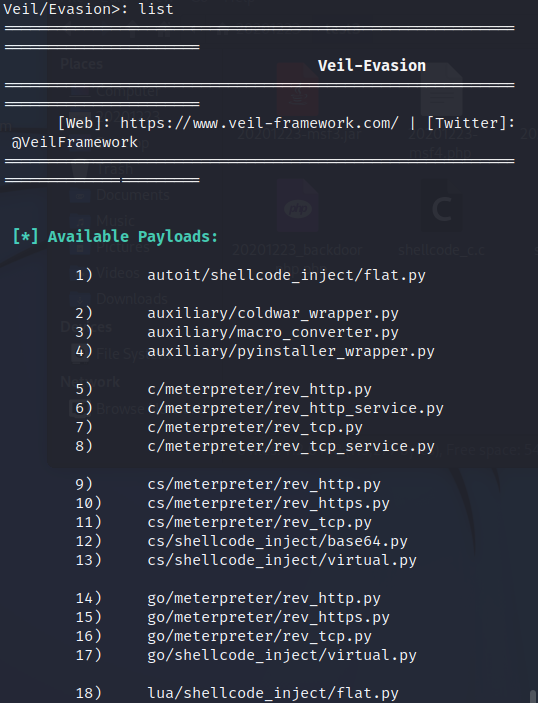 veil,输入use Evasion,再输入list - 输入