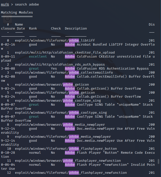 Auxiliary- 能够帮助渗透测试中在进行渗透攻击之前得到的目标系统丰富的情报信息,从而发起更具目标性的精准攻击。
