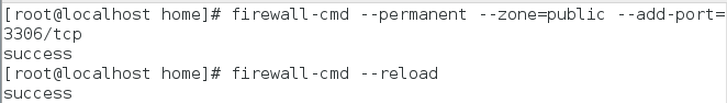 #开启访问端口 firewall-cmd --permanent --zone=public --add-port=3306/tcp #重新加载防火墙配置 firewall-cmd --reload