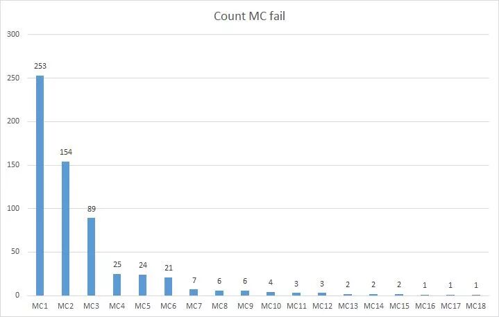 如图可以看出机器MC1 的报废率是最差的,可能是机器出现了问题。