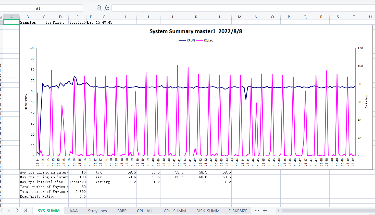 监控服务器资源使用情况,查看压测时段,服务器资源使用情况是否正常。使用命令:./nmon_x86_64_opensuse12 -F 监控数据存放的路径及文件(如master1.nmon) -s 5 -c 182监控服务器资源使用情况。