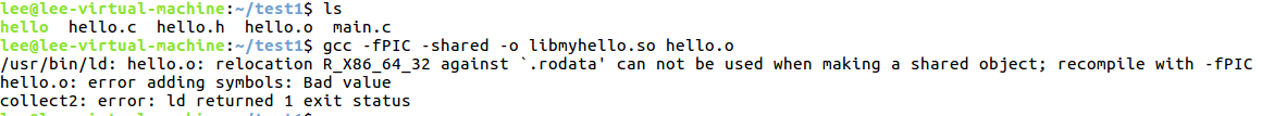 这时可以看到报错,该问题是译.o文件的时候,没有加参数 -fPIC,重新编译并加上 -fPIC,则可通过