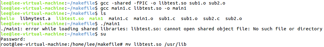 执行时会出现如上错误,因为连接是当前目录的动态库,现在只要把.so文件赋值到/usr/lib中就可以解决