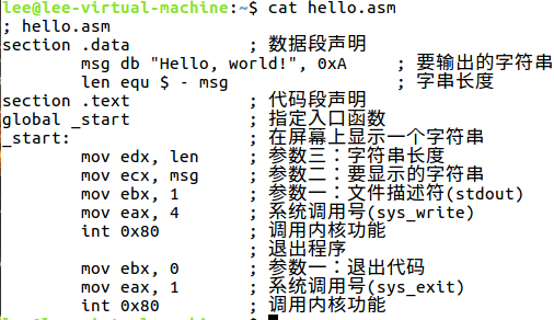 as汇编编译器针对的是AT&T汇编代码风格,Intel风格的汇编代码则可以用nasm汇编编译器编译生成执行程序。运行如下代码: