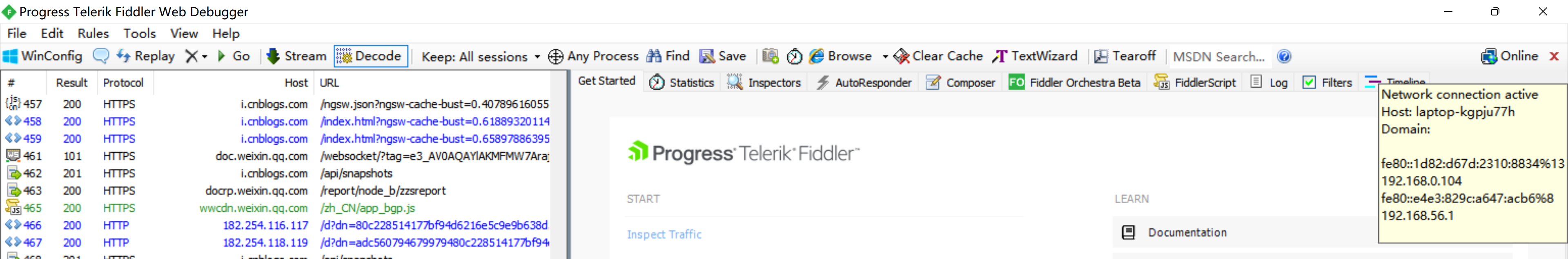 查看方式2:fiddler右上角的电脑图标,鼠标移到图标位置就会显示