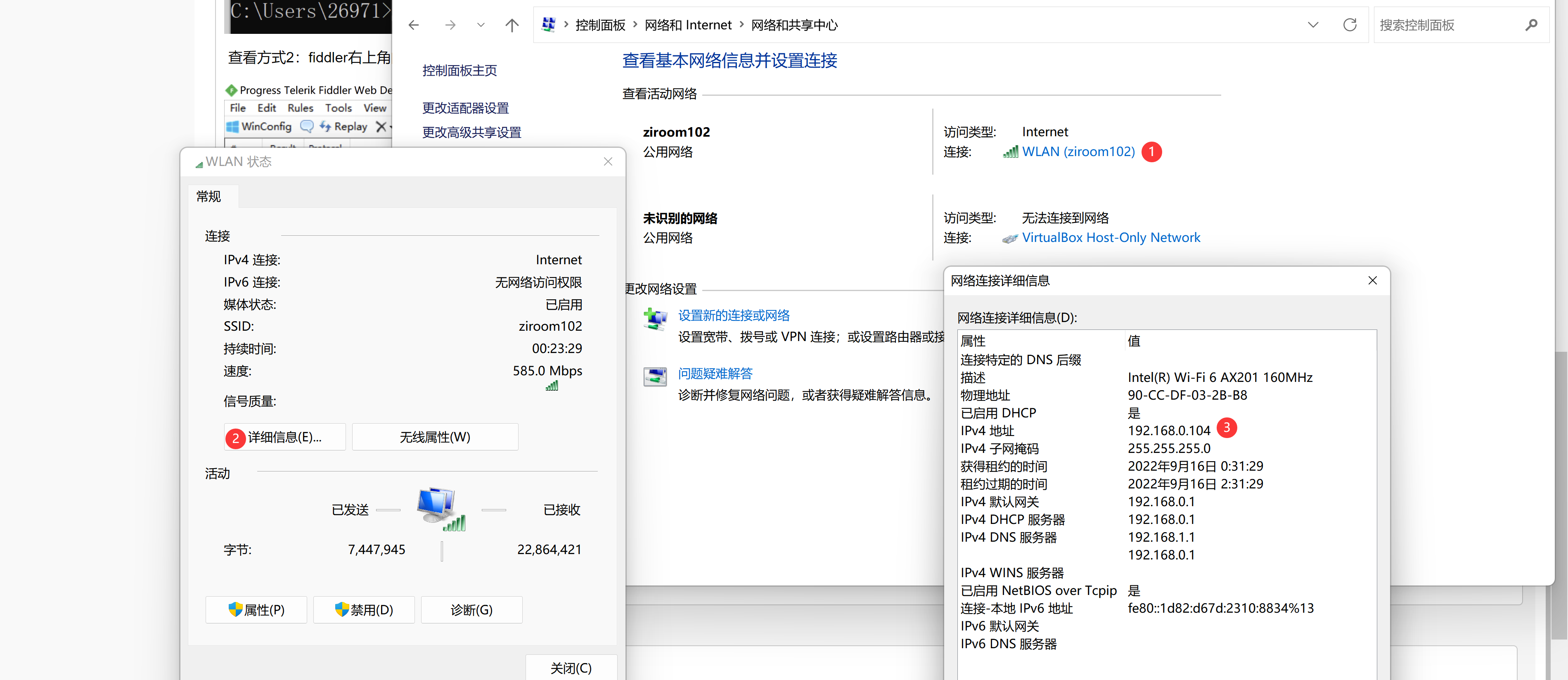 查看方式3:进入网络和共享中心-->wiff状态-->详细信息-->IPv4