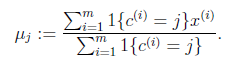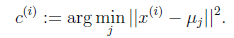 1、 随机选取k个聚类质心点(cluster centroids)为 2、 重复下面过程直到收敛 { 对于每一个样例i,计算其应该属于的类 对于每一个类j,重新计算该类的质心 } |