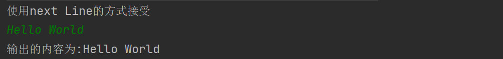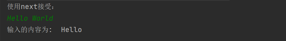 next()输入有效字符后,将其后面的空白作为分割符或结束符,故next()不能得到带有空格的字符串。
