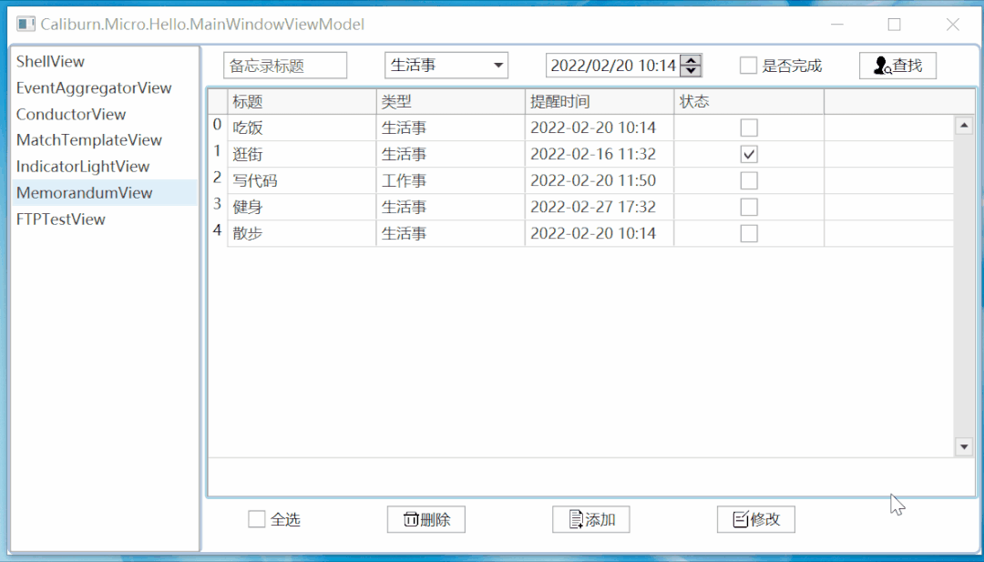 前几天群里有人问如何制作备忘录,感觉这样一个小实例挺适合新手们入门学习使用,所以就抽空做了出来。界面如下图: