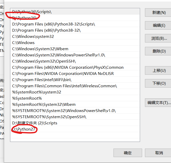 2.下载完成后将两个版本的python解释器所在的路径加入环境变量中。