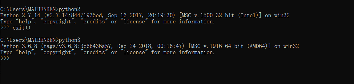 4.现在在cmd中即可切换python解释器版本。