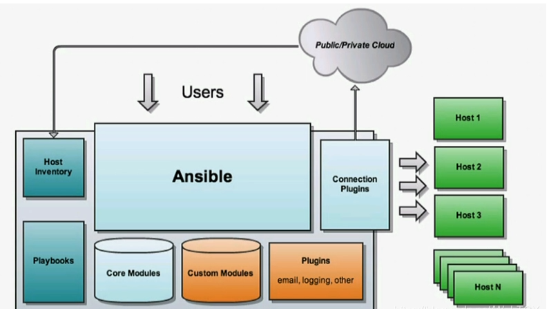 2.核心模块core modules连接主机实现操作,它依赖于用具体的模块做具体的事情
