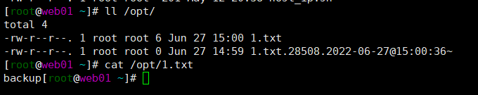 [root@m01 ~]# ansible web_group -m copy -a ' dest=/opt/1.txt backup=true content="backup"'
