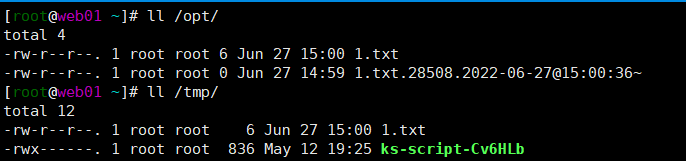 [root@m01 ~]# ansible web_group -m copy -a 'src=/root/1.txt dest=/opt'