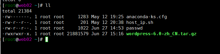 [root@m01 ~]# ansible web_group -m get_url -a 'url=https://cn.wordpress.org/latest-zh_CN.tar.gz dest=/root mode=775'