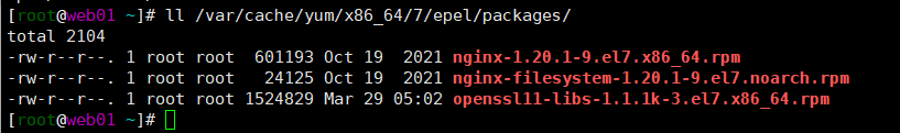 [root@m01 ~]# ansible web_group -m yum -a 'name=nginx download_only=true state=present'