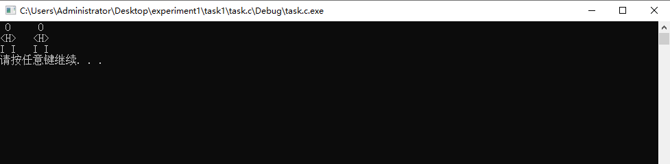 #include<stdio.h> #include<stdlib.h> int main() { printf(" O O\n"); printf("<H> <H>\n"); printf("I I I I\n"); system("pause"); return 0; }