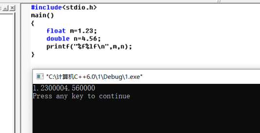 printf("%f%lf\n",m,n);