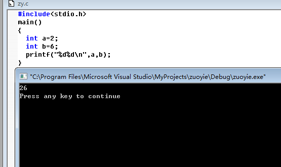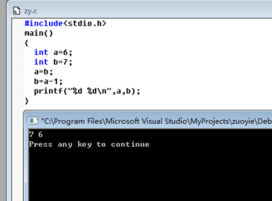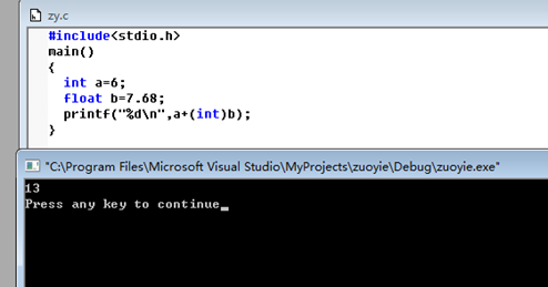 4. 编写程序,定义一个整形变量a和一个单精度变量b,分别赋值6和7.68,将b的值强制转换为整形,与a相加并输出。