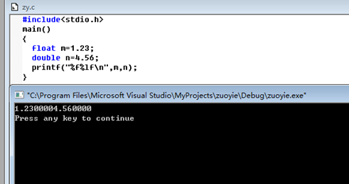 2. 编写程序,定义一个单精度和一个双精度的变量,赋值并输出。