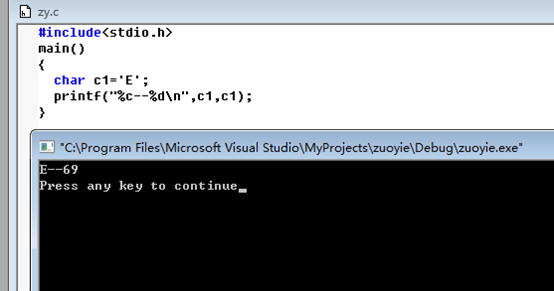 3.编写程序,定义一个字符型变量c1,赋值,并输出字符及相应的ASCII码。