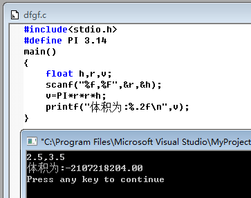 9. 编写程序,接收圆柱体的底面半径和高,输出其体积(结果保留两位小数)