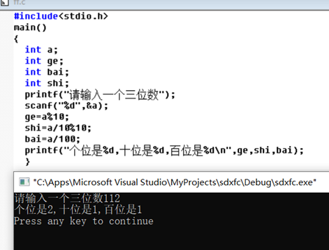 printf("个位是%d,十位是%d,百位是%d\n",ge,shi,bai);