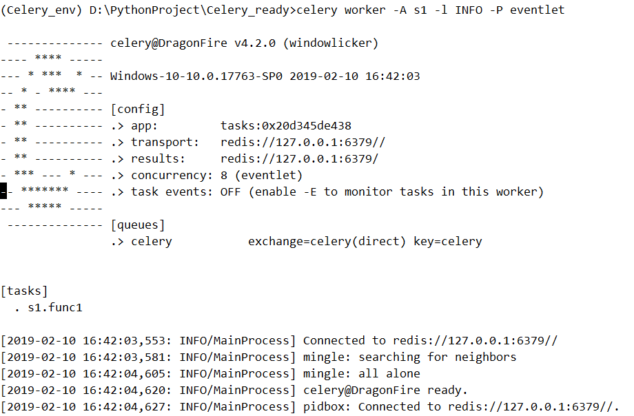 G:\Flask练习\my> celery worker -A s1 -l INFO -P eventlet (在pycherm的命令行)