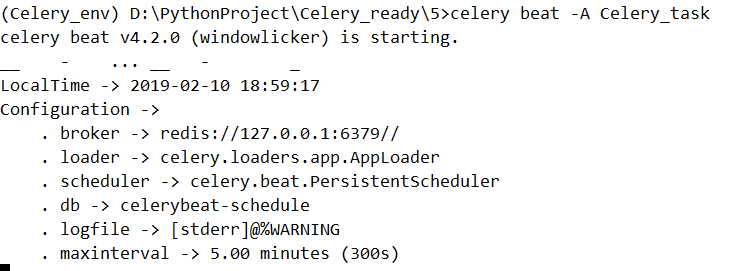 celery beat -A Celery_task # 创建生产者 beat 你的 schedule 写在哪里,就从哪里启动